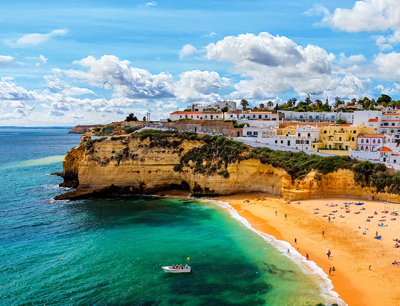 The Algarve is Portugal’s southernmost region, home to the southwestern tip of continental Europe. Its name comes from Arabic, meaning “The West.” The Algarve is known for its scenic cliffs, beaches, and warm climate.